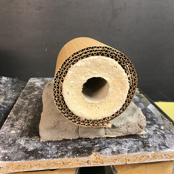 Remove one side of the cardboard paper and wrap it around the briquettes. If you have a clay that shrinks a lot during firing, you need to wrap the cartboard more times.