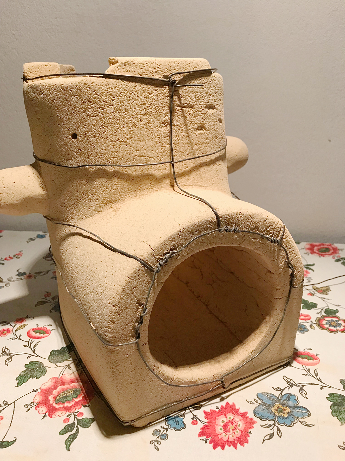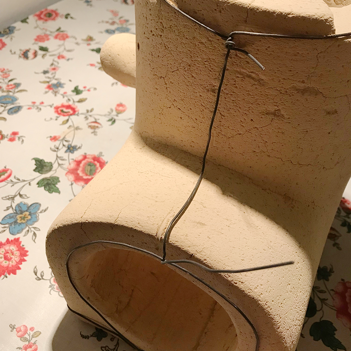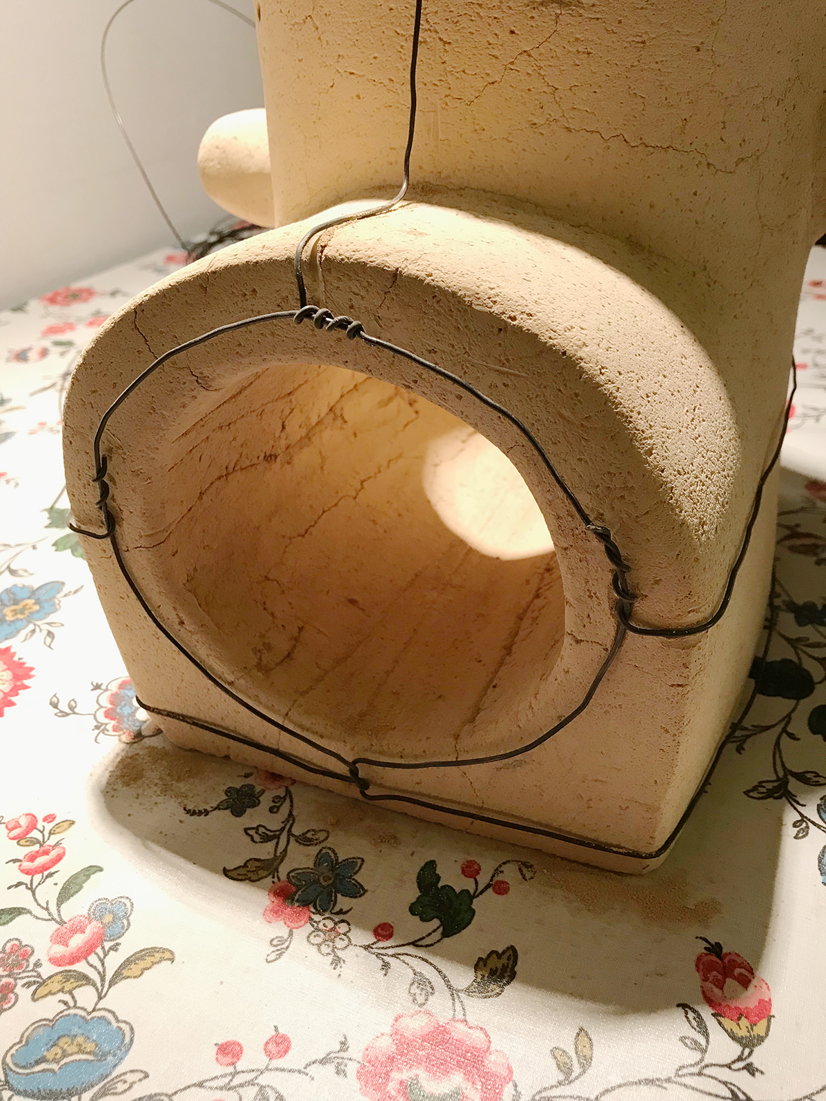 Materials needed: ceramic stove, soft wire, pliers.Wrap a piece of wire around the entry, leaving enough wire to reach the back of the stove.Tighten the wire at the back of the stoveCreate a rim at the top, tightly around the pot holders and up to the front of the stove.Tighten to the front wire (step 1)Connect the top and the bottom wires at the back of the stove.Make a horizontal connecting around the back of the stove.Make one more horizontal connection at the top part.You can connect the wires at the back or at the front part of the stove.Make the 3rd horizontal connection between 1st and 2nd wire.Make sure the wires are straight and with similar space between them.Now connect all vertical wires, wrapping the wire around every horizontal one. You can use a single wire for 2 vertical connections.