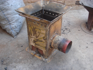 The Holey Roket stove type was adapted to the existing stove in Chad. First, drawings were sent with adjusted dimensions for burning briquettes. First prototype was made and was working with longer briquettes (app 6 inches in length). Briquette support was needed due to a larger combustion chamber and to allow the ashes falling in the box below. Due to lower-powered briquettes, more feeds were … Continue reading Metal Holey Roket stoves in Chad