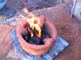 We have to know the briquette material by default is not burning as well as fire-wood or charcoal, that is why it needs an efficient combustion system to burn the smoke emissions with high enough temperature and directed-to-pot fire to provide faster cooking. The hole in the briquette acts as a combustion chamber in itself, making the flame hot enough and directed straight in to the centre of the pot.