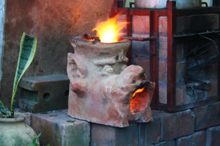 Firing the stove in the kiln